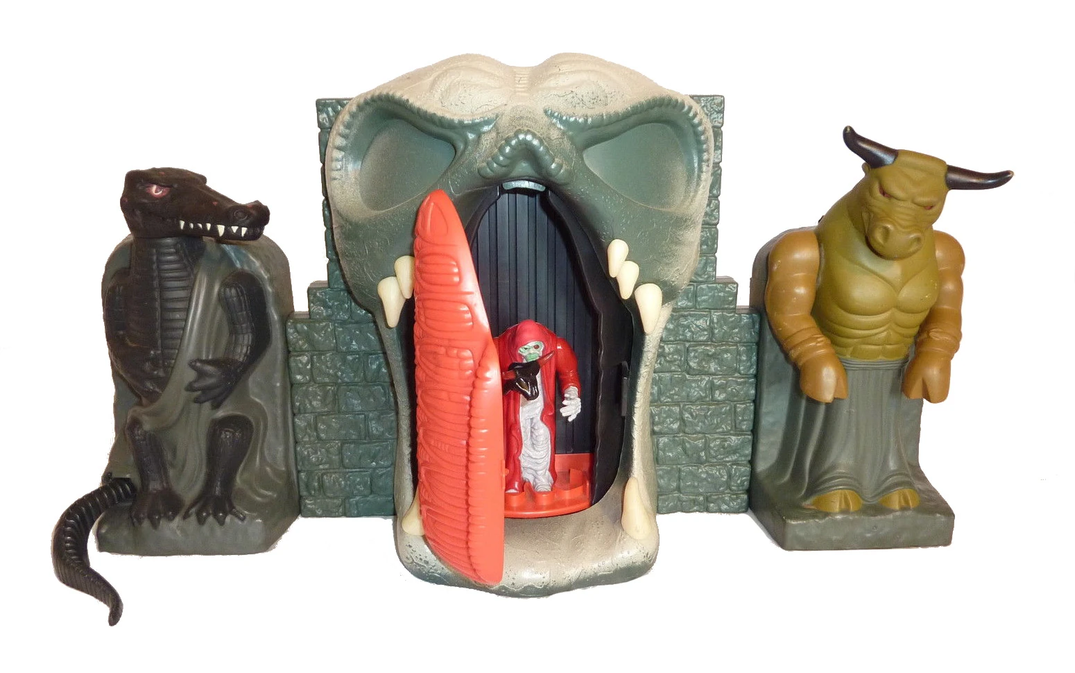 The toy company LJN produced a Mumm-Ra's Tomb Fortress playset as part of its ThunderCats toyline. The playset included two of the four Ancient Spirits of Evil statues, those of the Crocodile and the Minotaur.