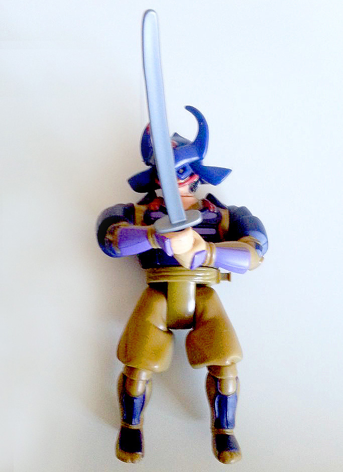2. Poseable limbs and head: The Hachiman figure had 5 points of articulation, 2 at the shoulders, 2 at the hips and 1 at the neck. These points allowed the figure to be posed in a variety of action poses.