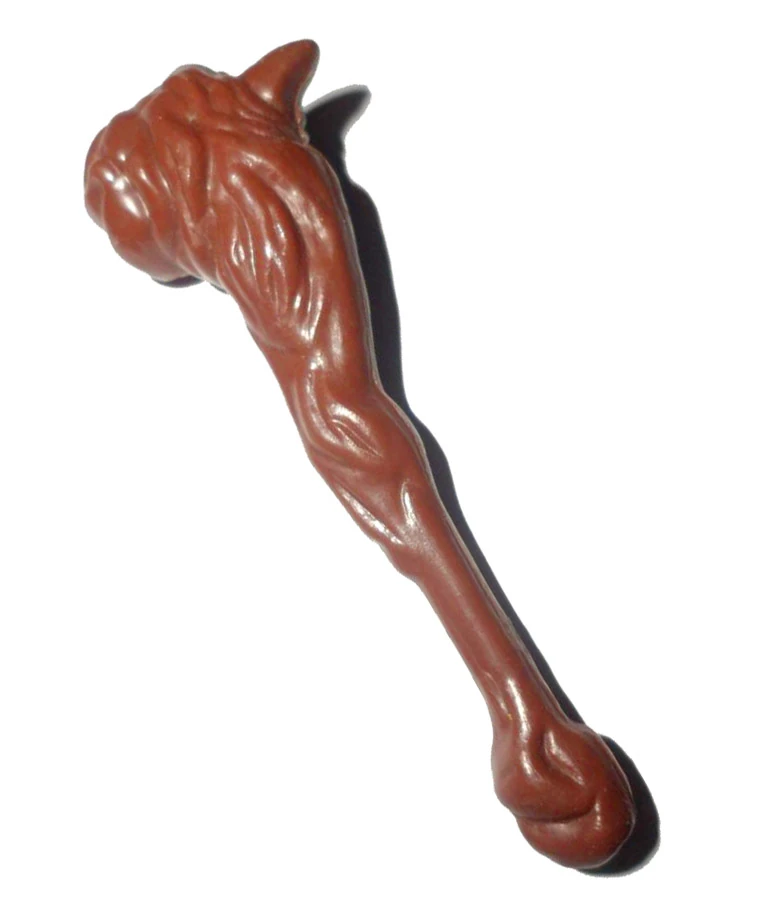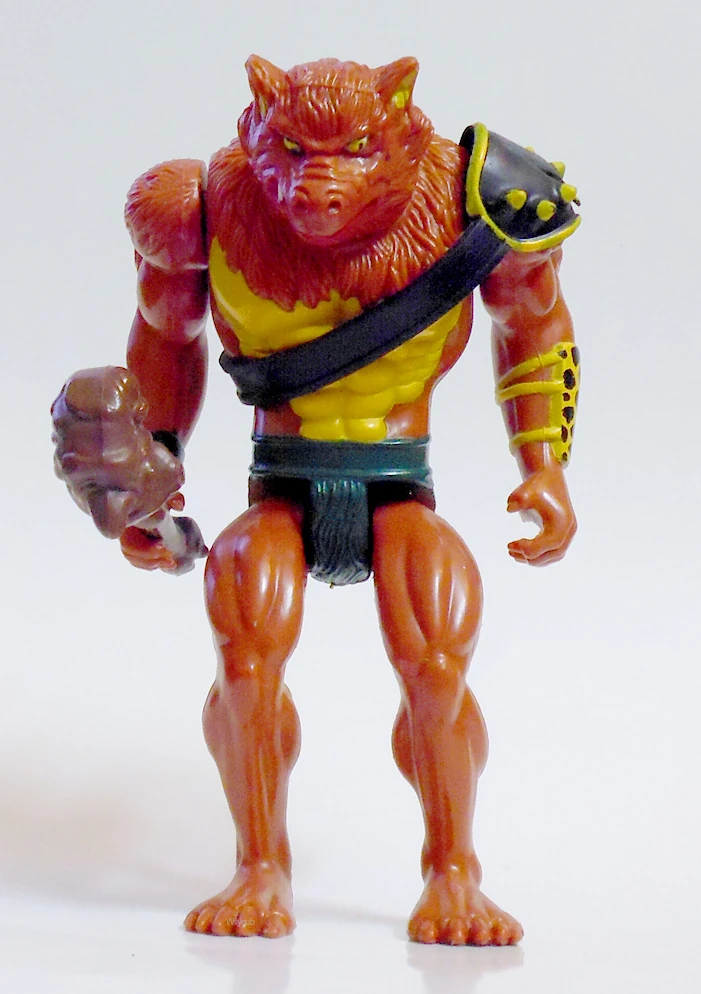 1.Club: The Club was made of brown plastic with a few spikes protruding from the top end. It was designed to fit in the figure's Battle-Matic right hand. It was similar in appearance to the one wielded by Jackalman on the ThunderCats cartoon show.