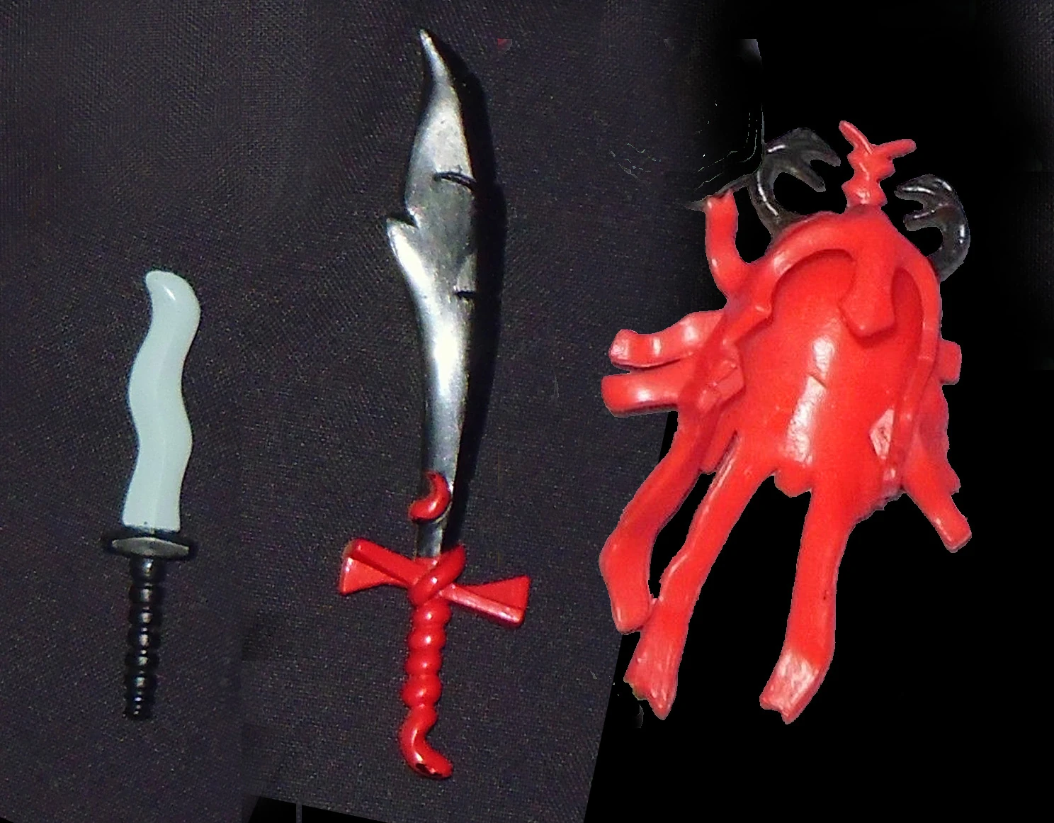 2. Dagger: Shorter than the sword, the dagger was also made of black plastic but its blade was painted silver (see variations below). The dagger was designed to fit into Mumm-Ra's left hand.