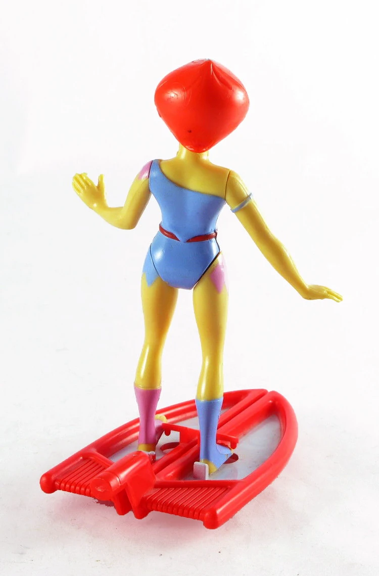 Spaceboard: Made of a red plastic with parts painted grey the Spaceboard had tiny pegs which would fit into the figure's feet, allowing the figure to stand on the Spaceboard.