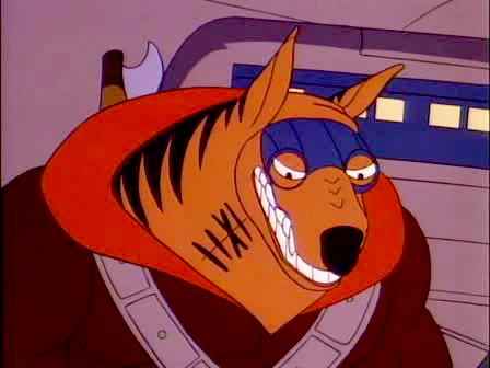 Demolisher is an intergalactic fighter who resembles an anthropomorphic Doberman dog. Seeking nothing but the glory of victory, Demolisher scours the galaxies in his spaceship in search for a worthy opponent to fight with and defeat. His side-kick, cheerleader and pilot is an armadillo named Dirge.
