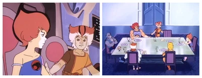 - When Dr. Dometone is explaining his plight to the ThunderCats in the Conference Room, WilyKat's wrist-bands are absent. The same mistake is seen near the end when the ThunderCats are getting ready to have their meal.