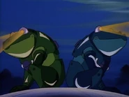 Without morals or a conscience, Scrape has no qualms about using every means possible to obtain the rock, even if it means killing all the marine life of Third Earth. His initial attack destroyed Samson, another giant robotic frog that was guarding the Plug. Now with only Hercules and a handful of crew, Dr. Dometone is hopelessly outmatched and thus begs the ThunderCats for their help. The feline heroes agree and while Lion-O, WilyKit, and WilyKat leave with Dr. Dometone inside "Herky", the other ThunderCats remain to build an emergency rig.