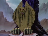 Lion-O re-materializes in the strange Astral World. He locates the Astral Prison and begins climbing the steep crystalline walls of the prison using his Claw Line. Suddenly he notices a bubbling in the moat below him and a strange blue-skinned, red-winged monster lunges at him, missing him by inches. The Astral Moat Monster then begins to scale the wall by sinking its sharp claws into it, heading straight for Lion-O. The young lord dispatches the creature by zapping it with his sword, making it drop back into the moat.