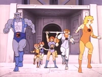 - In the scene towards the end when the ThunderCats are shown chasing the Mutants, the light grey patch is missing around Panthro's mouth, and Tygra's costume's right chest is erroneously colored in a lighter tone instead of a darker one.