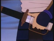 Not one to give up easily, Mumm-Ra summons another ancient Japanese warrior, a Ninja, to bring his evil scheme to fruition. Disguised as Gumla the Tabbut, the Ninja infiltrates the Treetop Kingdom pretending to be a hostage negotiatior. At nightfall, the Ninja begins his dastardly activities but is quickly discovered by Hachiman. The Ninja then uses Nayda as a hostage to keep Hachiman at bay while a troop of Mutants launch an ambush on the Treetop Kingdom. Seeing the battle, Lion-O quickly summons the other ThunderCats, and their arrival in the ThunderTank sends the villains fleeing. Having earned Lion-O's friendship and respect, Hachiman bids him farewell and walks off into the sunset.